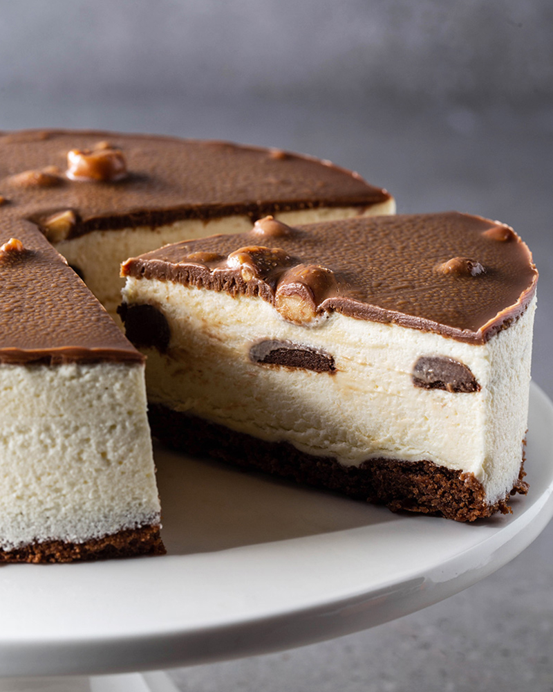שילוב קטלני של מוס בוואריה עשיר עם בראוניס שוקולד בציפוי שוקולד חלב ואגוזי לוז.