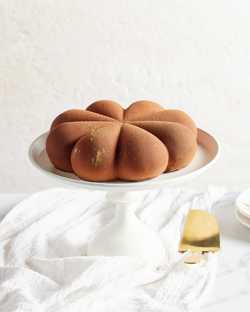 עוגת שכבות על בסיס קראנץ פריך עם שכבת מוס פרלינה עדין, לב רך של נמסיס עשיר וקרמבו שוקולד סמיך.