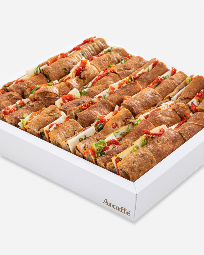 מגש כריכי פינגר פלוט זיתים, פלפל וגבינת עזים
