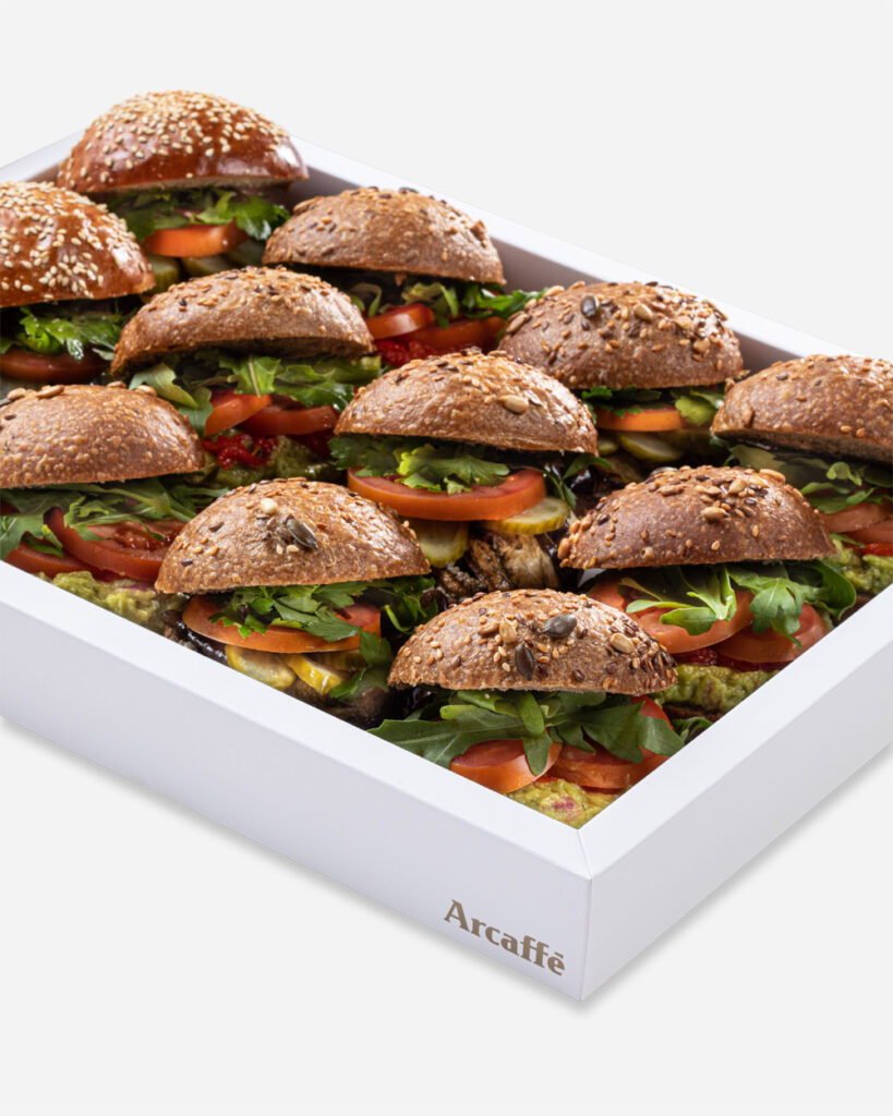 סביח – לחמנית בריאות, חציל קלוי, טחינה פיקנטית, ביצה קשה, מלפפון חמוץ, עגבניה, בצל סגול ופטרוזיליה.