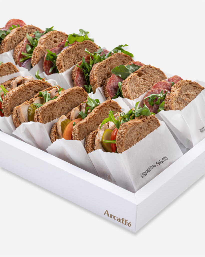 עוף – פרוסות עוף, איולי חרדל , רוקט, מלפפון חמוץ ועגבניה.