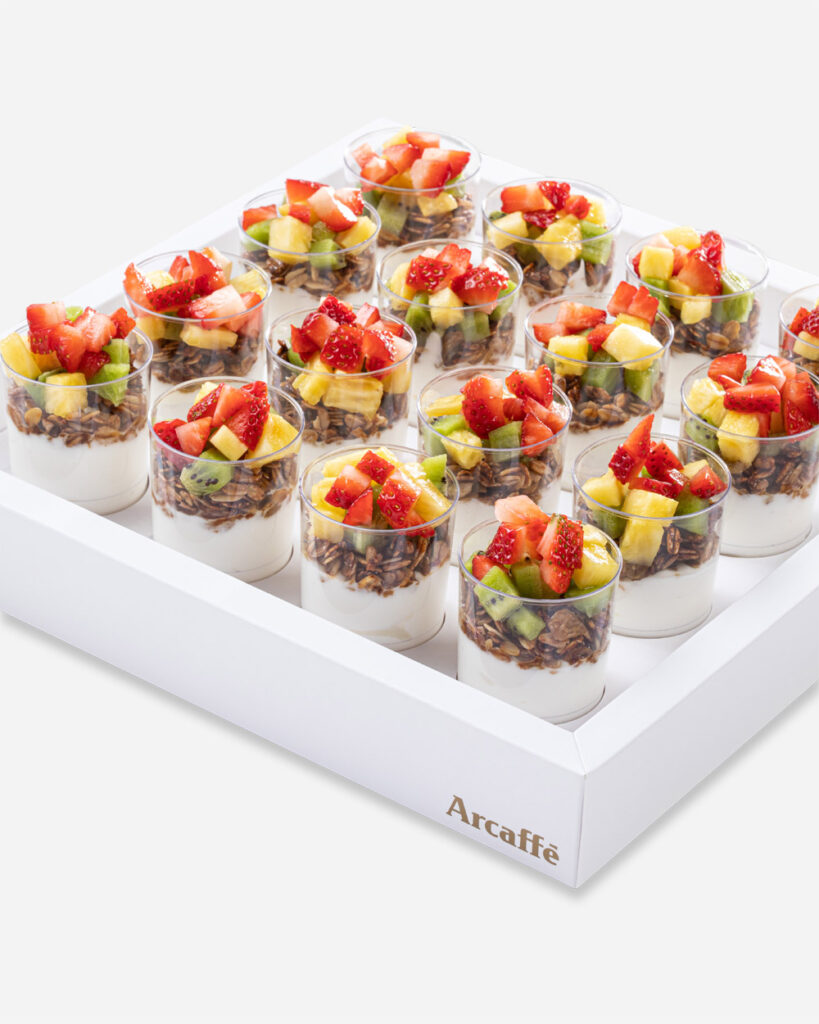 כוסיות של יוגורט כבשים עם גרנולה תוצרת בית, פירות העונה טריים ודבש. מושלם לאירוע בוקר. *ניתן להחליף את הדבש בסילאן, יש לציין זאת בהערות.