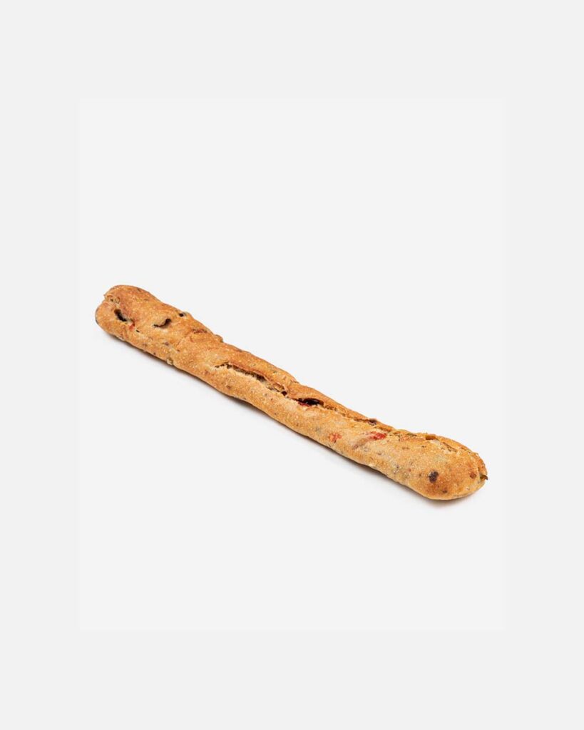 לחם צר ודקיק על בסיס מחמצת, עם קמח לבן, קמח שיפון, בתוספת זיתים, פלפלים ותבלינים.