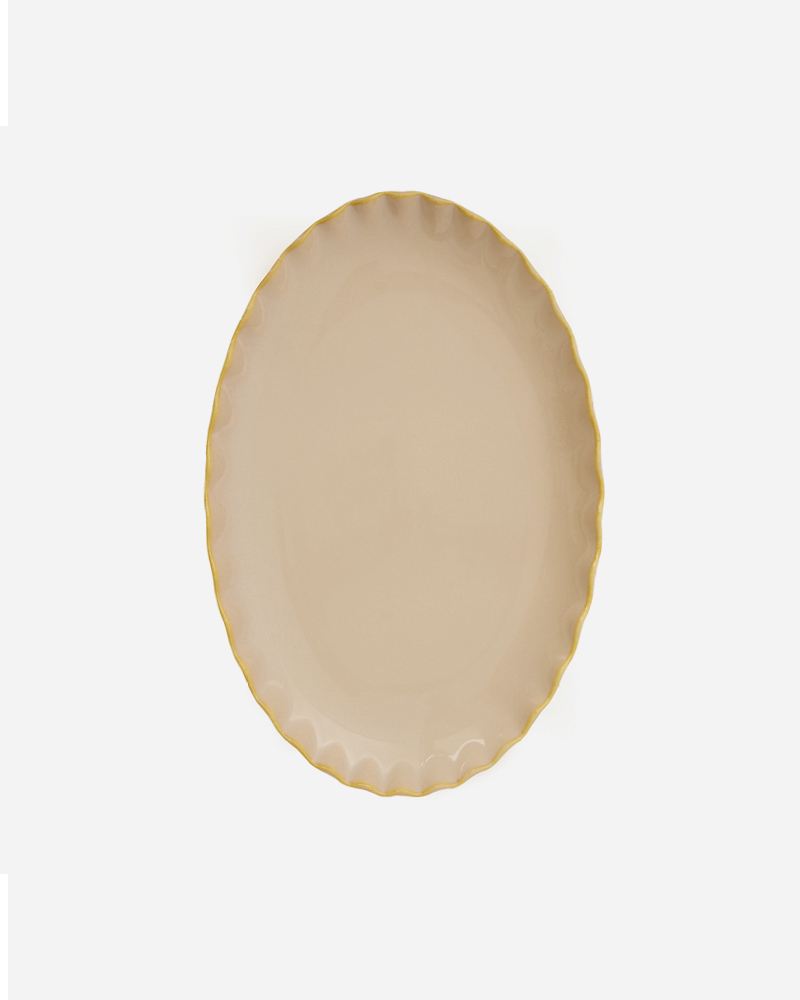 צלחת אירוח אובלית בעיצוב שוליים גליים.