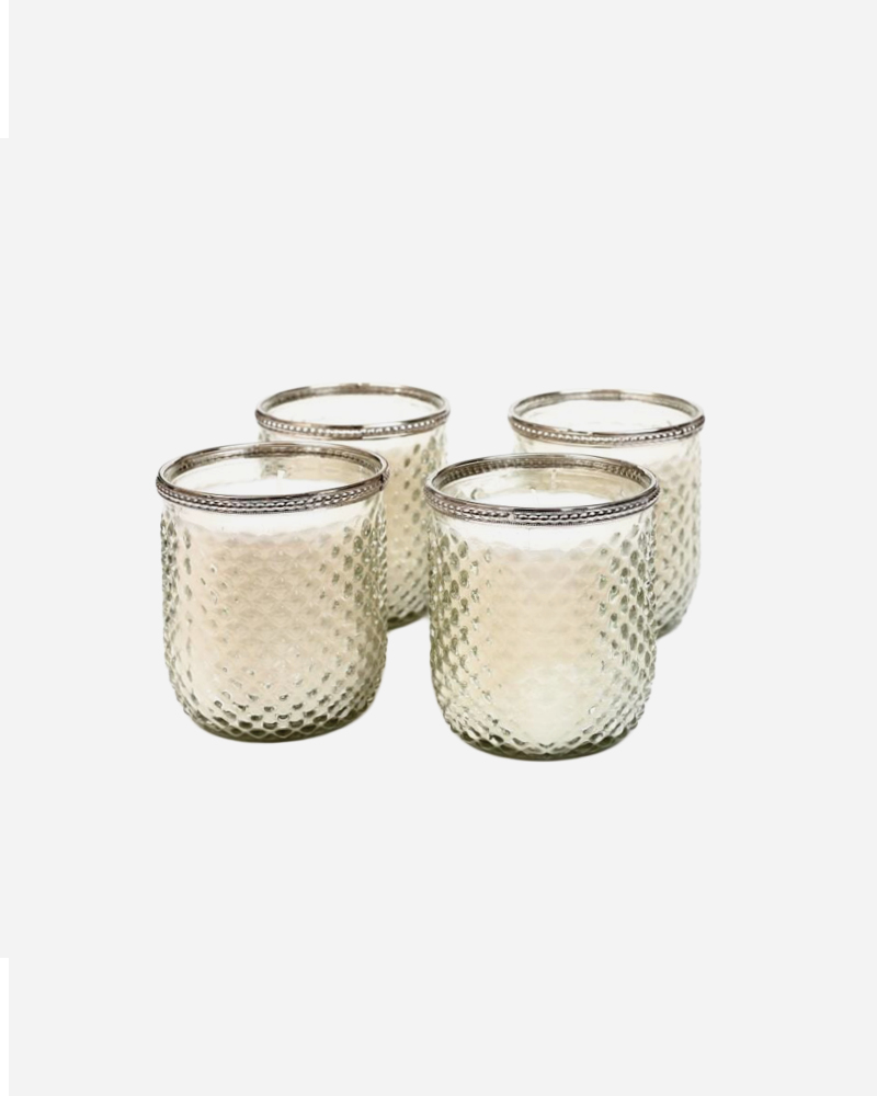 סט של ארבעה נרות ונילה בכלי זכוכית.