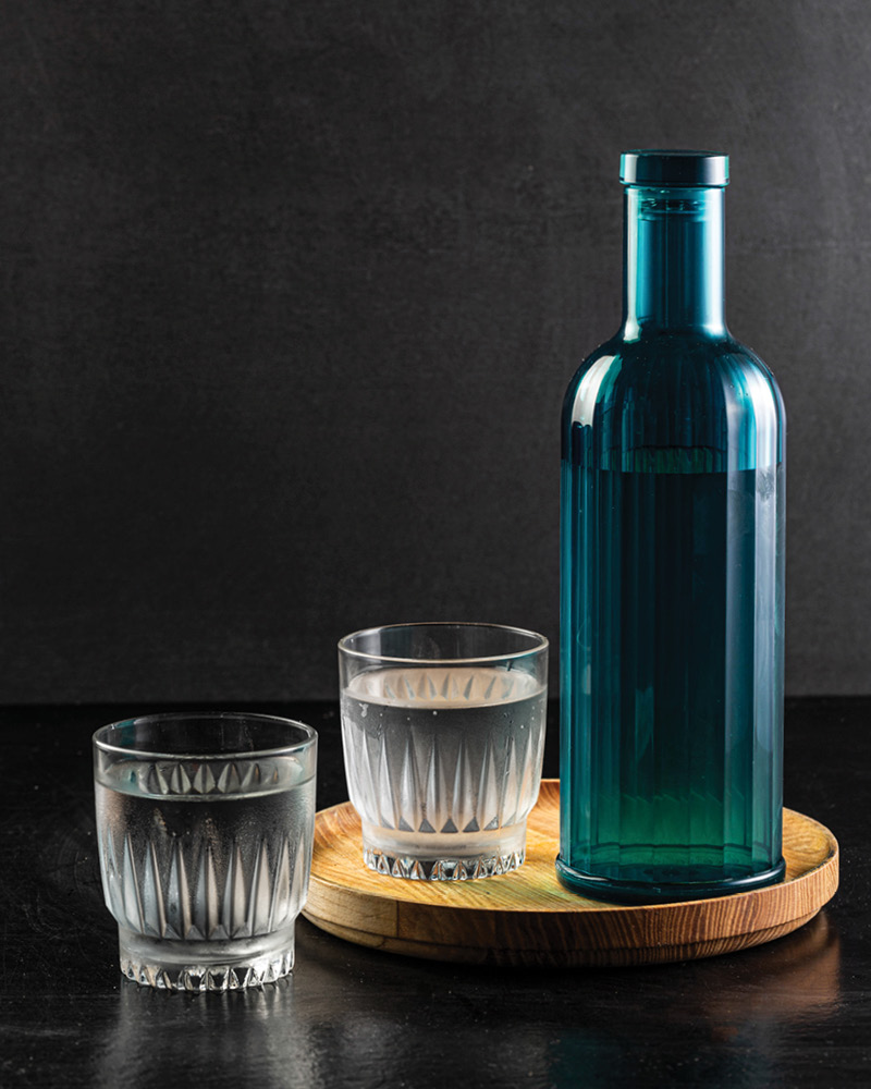 בקבוק שתיה קרה מעוצב שישדרג כל שולחן. במראה דמוי זכוכית מפוליקרבונט איכותי.