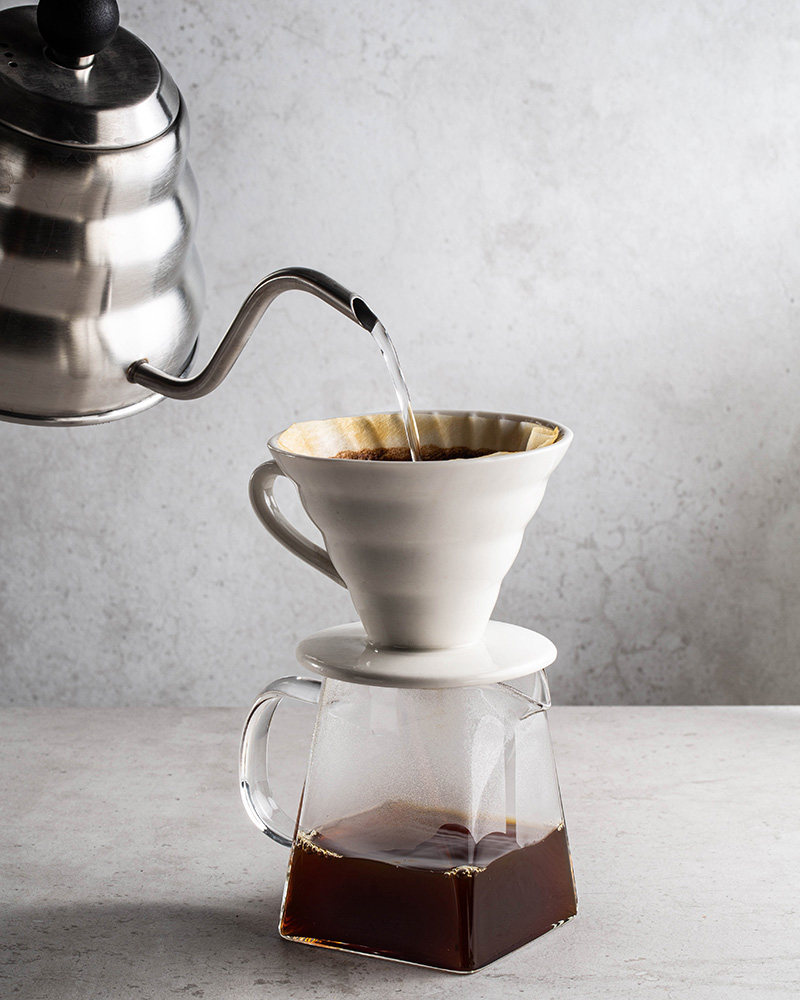 קפה בטפטוף איטי דרך פילטר ייחודי על ידי V60 יוצר קפה נקי וחלק. שיטה זו ממצה את הטעמים העמוקים והטבעיים ומדגישה את המתיקות הטבעית של פולי הקפה.